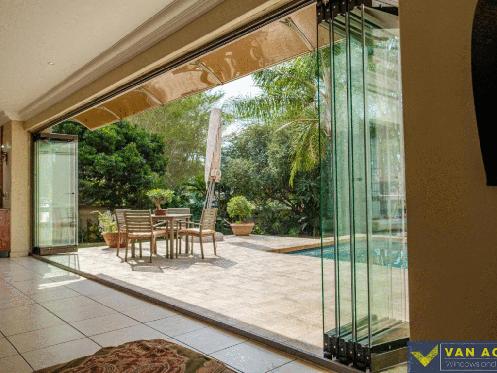 Frameless folding doors give any UAE house a smooth, modern appearance that improves its aesthetics. These doors are ideal for joining indoor and outdoor areas because they have no visible frames, giving the impression of being open and spacious. They are perfect for Dubai’s sunny climate because of their smooth folding mechanism, which maximizes natural light and makes entry simple.
